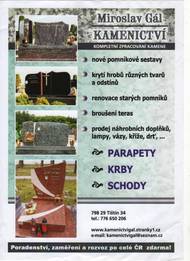 Pro naši obec nabízí své služby kamenictví G.A.L s dlouholetou tradicí, které u nás bude přijímat objednávky na veškeré kamenické práce. Vše za výhodné ceny. Pro využití této akční nabídky, je NUTNÉ si sjednat přesný čas schůzky s tímto kameníkem.