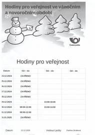 Pošta Kly - Hodiny pro veřejnost ve vánočním a novoročním období