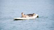 Tuleni na surfařském prkně okouzlili irské městečko. Hovoří se i o soše