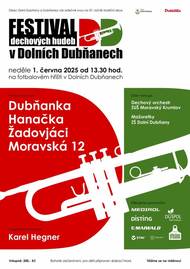 Zveme všechny na tradiční Festival dechových hudeb v Dolních Dubňanech, který se koná 1. června 2025. Těšit se můžete na vystoupení kapel Dubňanka, Hanácká, Žadovjaci a Moravská 12 pod vedením Karla Hegnera.