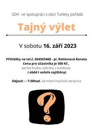 SDH ve spolupráci s obcí Tutleky pořádá Tajný výlet v sobotu 16.září 2023. Pro více info rozklikněte událost.