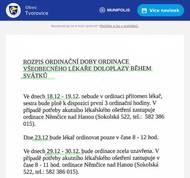 Vánoční ordinační doba - praktický lékař Klenovice na Hané