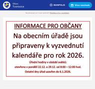 Kalendáře rok 2026 + úřední doba svátky