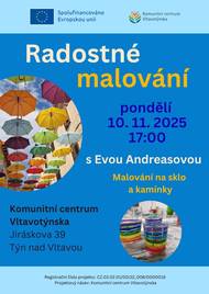 Komunitní centrum Vltavotýnska RADOSTNÉ MALOVÁNÍ S Evou Andreasovou Malování na sklo a kamínky.