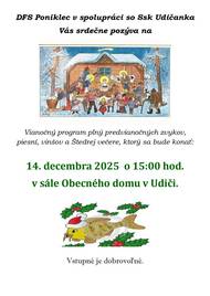Detský folklórny súbor Poniklec v spolupráci so speváckou skupinou Udičanka Vás srdečne pozýva na Vianočný program.