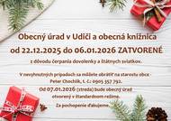 Oznamujeme, že v období od 22.12.2025 do 06.01.2026 /vrátane/ budú Obecný úrad v Udiči a obecná knižnica ZATVORENÉ.