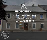 Upozorňujeme na změnu provozní doby České pošty dne 23.10.2025. Pošta bude otevřena od 12:00 do 15:00 hod.