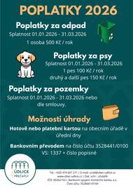 Vážení občané, informujeme Vás o povinnosti úhrady poplatků za odpad a psů za rok 2026.