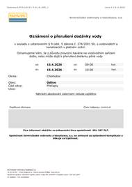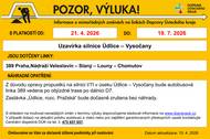 Vážení občané, upozorňujeme na výluku autobusové linky č. 389 Praha, Nádraží Veleslavín - Slaný - Louny - Chomutov s platností od 21.04.2026 do 19.07.2026. Z důvodu opravy propustků bude zastávka "Údlice, rozc. Pražská" dočasně zrušena bez náhrady. Děkujeme za pochopení.