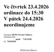 Dovolujeme si Vás informovat o dočasné krátkodobé uzavírce pošty. Provozovna bude uzavřena na nezbytně nutnou ve dnech od 15.4.2026 - 29.4.2026 z provozních důvodů. Po dobu jejího uzavření budou poskytované služby zajištěny provozovnou Javorník