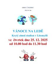 Příznivci vánočního bruslení jsou vítáni na ledě na Zimním krytém stadionu v Litomyšli ve čtvrtek 25.12.2025 od 10.00 hod do 11.30 hod. Přijďte nasát atmosféru zimy a pozdravit se se stejně naladěnými přáteli.