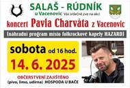 v neděli 15.6.2025 od 17 h v salaši Rúdník u Vacenovic