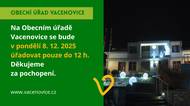 V pondělí 8.12.2025 je Obecní úřad otevřen jen do 12 hodin. Děkujeme za pochopení.
