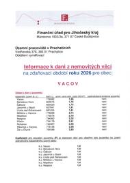 Informace k dani z nemovitých věcí pro rok 2026 - Vacov. Lze najít i na webu obce Vacov.