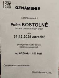 Vážení občania, dňa 9.12.2025 bude otvorená knižnica v čase od 16:30 do 17:30 hod.