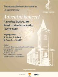 ✨Srdečně vás zveme na Adventní koncert, který se uskuteční 7. prosince 2025 v 17:00 v kostele sv. Stanislava Kostky v Úvalech u Valtic.✨ Čeká vás výjimečný hudební podvečer s díly A. Michny, J. S. Bacha, H. Purcella a A. Vivaldiho, který navodí tu pravou adventní atmosféru. Účinkují: Dr. Ensemble Hlohovec pod vedením Veroniky Svačinové Lucie Karafiátová – mezzosoprán Marie Štefanová – soprán Jiří Partyka – housle Děti ze ZUŠ Mikulov a z ansámblu Veroniky Svačinové a Zuzany Málkové Vstupné je dobrovolné. Přijďte si užít krásnou hudbu a společně se naladit na adventní čas!