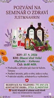 27. dubna 2026 od 16 hodin v knihovně ve Velké Hleďsebi.