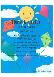 Zastupitelstvo obce dne 15.9.2025 schválilo vyhlášení výzvy k podávání žádostí o dotace pro spolky, se sídlem na území obce na činnost ve prospěch obyvatel obce Velké Chvojno a jejich místních částí. Termín pro podání žádostí o dotaci - do 17.10.2025