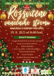 Obec Velké Chvojno vás srdečně zve na tradiční rozsvícení vánočního stromu, za finanční podpory Severočeská voda – nadační fond, Skupina ČEZ a MFI. Hrnečky na svařáček a čaj s sebou!