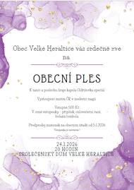 Obec Velké Heraltice Vás srdečně zve na OBECNÍ PLES, který se bude konat 24.ledna 2026 od 20:00 hod. ve Společenském domě ve Velkých Heralticích.