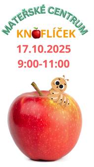 V pátek děti a rodiče čeká jablíčkové čarování. 🍎 Budou tvořit, hrát si a možná se naučí i novou říkanku. Přijďte si užít voňavé podzimní dopoledne! Těšíme se na vás.
