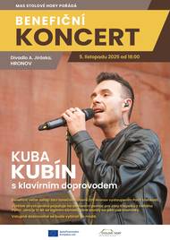 Srdečně Vás zveme na kulturní zážitek do Jiráskova divadla v Hronově. Ve středu 5. listopadu vystoupí v 18 hodin dětský taneční soubor pod vedením Zuzky Zítkové. Poté se uskuteční koncert zpěváka a moderátora Kuby Kubína s klavírním doprovodem. Určitě se máte na co těšit. Dobrovolné vstupné se bude vybírat na místě. Veškeré vybrané finance budou použity na nákup asistenční služby pro Jaroslava Křepelku z Velkého Poříčí. Přijďte se v půlce týdne potěšit krásnými melodiemi a přispět na dobrou věc. Středa 5. listopadu, v 18 hodin, Divadlo Aloise Jiráska, Hronov. Těšíme se na Vás. Místní akční skupina Stolové hory.
