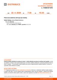 Upozorňujeme na plánovanou odstávku elektřiny 22.4.2026 v čase 7:30-15:30 na území: Velké Všelisy (okres Mladá Boleslav) část obce Zamachy č. p. 1-6, 8-14, 20, 23-39, 53, 54 kat. území Zamachy (kód 790907): parcelní č. 10/1, 63