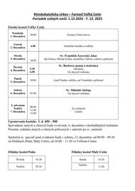 Poriadok svätých omší: 12.12.2025 - 28. 12. 2025