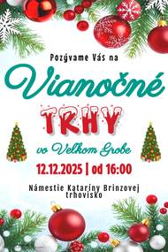 Základná škola vo Veľkom Grobe Vás srdečne pozýva na príjemné popoludnie vo Vianočnej tržnici, ktoré sa bude konať vo štvrtok 4. decembra od 15:00 do 18:00 v budove školy.