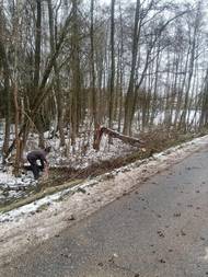Čištění kanálů po deštích 30.10.2024. Naši pracovníci umístili z bezpečnostních důvodů zábradlí u kanálové výpustě