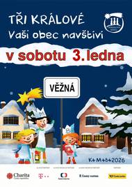 Tříkrálová sbírka se ve Věžné a Brné uskuteční v sobotu 3. ledna 2026. V roli Tří králů bude o finanční dary prosit rodina Janů. Za Vaši štědrost děkuje Charita.