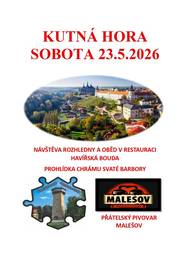 Obec pořádá tradiční zájezd tentokrát do města Kutná Hora. Termín 23.5.2026