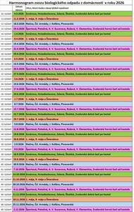 HARMONOGRAM ZVOZU BIOLOGICKÉHO ODPADU Z DOMÁCNOSTÍ V ROKU 2026