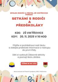 Základní škola a Mateřská škola Vikýřovice srdečně zve rodiče, děti i širokou veřejnost na Den otevřených dveří, který se uskuteční 2. 12. 2025 od 8:00 do 15:00.Přijďte si prohlédnout naše prostory, seznámit se s učiteli, nahlédnout do výuky a zjistit více o tom, jak to u nás chodí. Těšíme se na Vás