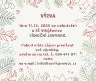 Ve čtvrtek 11. prosince od 16 hod. se uskuteční u základní školy ve Vikýřovicích VÁNOČNÍ JARMARK. Pokud máte zájem prodávat své výrobky, ozvěte se na telefonní číslo 604 447 871 nebo na email: info@zsvikyrovice.cz.
