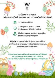 Jednou z mnoha aktivit, které město Vimperk pro své starší občany připravuje, jsou pravidelná "tvoření" - ruční výroba tematických dekorací. Aktuální s velikonočním zaměřením se chystá na 31. března v Klubovně pro seniory a spolky Sklářská 399. Pro dlouhodobě velký zájem jsou vypsány dva termíny, a je nutné se dopředu registrovat. Materiál a občerstvení zajištěno, stačí si přinést dobrou náladu!
