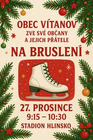 Vážení občané, obec Vítanov zve své občany a jejich přátele na bruslení 27. prosince od 9:15 do 10:30 na stadion v Hlinsku.