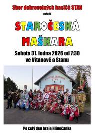 Vážení občané, SDH Stan pořádá tradiční staročeskou maškaru v sobotu 31. ledna 2026 po celý den ve Vítanově a ve Stanu. Po celý den hraje Hlinečanka.