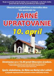 Obecné zastupiteľstvo a starostka obce Vás pozývajú v piatok 10. apríla 2026 na jarné upratovanie obce. Stretneme sa o 16:00 pred Obecným úradom.