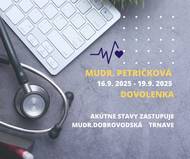 MUDr.Petričková nebude dňa 03.11.2025 ordinovať, akútne stavy zastupuje MUDr.Dobrovodská v Trnave.