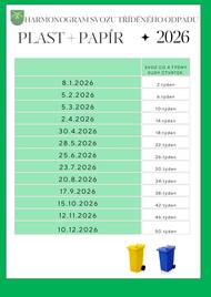 Připomínáme občanům harmonogram svozu odpadu pro rok 2026. Svoz jednotlivých druhů odpadu bude probíhat dle stanoveného rozpisu v pravidelných termínech. Prosíme, aby byly popelnice připraveny k vývozu včas, ideálně den předem nebo nejpozději do 6:00 hodin v den svozu. Děkujeme