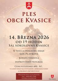 Ples Obce Kvasice se koná 14. března 2026 v sále sokolovny Kvasice. Podrobnosti v příloze.