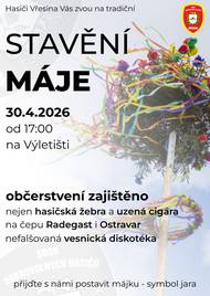 Srdečně Vás zveme na tradiční akci Stavění máje. Je připraveno bohaté občerstvení, dobré pití, skvělá diskotéka a zábava až do rána. Těšíme se na Vás.
