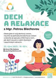Prožitkové setkání zaměřené na vědomý dech, uvolnění a návrat k sobě. Pod vedením zkušené terapeutky se naučíte jednoduché techniky, které Vám pomohou: · zklidnit mysl a tělo, · lépe zvládat napětí a stres, · navázat kontakt se svým dechem a vnitřním prostorem, · dopřát si chvíli péče a pozornosti jen pro sebe.