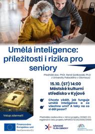 Městské kulturní středisko Kyjov 15. 10. 2025: 14:00 – Umělá inteligence: příležitosti i rizika pro seniory Přednáší doc. PhDr. René Szotkowski, Ph.D., Univerzita Palackého v Olomouci 16:00 – Digitální svět dětí: jak na bezpečí online (přednáška pro rodiče) Přednáší doc. PhDr. René Szotkowski, Ph.D., Univerzita Palackého v Olomouci