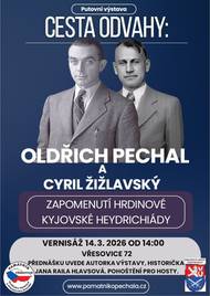 Putovní výstava "CESTA ODVAHY: OLDŘICH PECHAL A CYRIL ŽIŽLAVSKÝ" Vernisáž se koná 14. 3. 2026 od 14:00 hod. v zasedací místnosti OÚ.