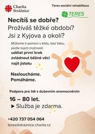 Nabízíme bezplatnou podporu lidem s duševním onemocněním ve věku 16 až 80 let. Pokud prožíváte těžké období, neváhejte nás kontaktovat na tel. 737 054 064 nebo e-mail: teres@straznice.charita.cz. Můžeme vám pomoci v klidu a bez tlaku najít jistotu a zvládnout každodenní situace.