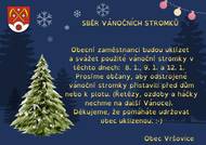 Obecní zaměstnanci budou uklízet a svážet použité vánoční stromky v těchto dnech: 8. 1., 9. 1. a 12. 1. Prosíme občany, aby odstrojené vánoční stromky přistavili před dům nebo k plotu. (Řetězy, ozdoby a háčky nechme na další Vánoce). Děkujeme, že pomáháte udržovat obec uklizenou. Obec Vršovice