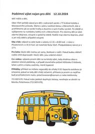 Obec Všeň pořádá zájezd pro děti, který se uskuteční 12.10.2024. Více na webu obce.