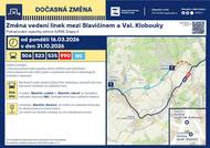 Od 16. 3. 2026 do 31. 10. 2026 budou z důvodu pokračování uzavírky silnice II/494 mezi Slavičínem a Bohuslavicemi nad Vláří jezdit autobusy podle výlukového jízdního řádu (viz fotografie). Autobusy Valašské Klobouky - Slavičín (a opačně) budou jezdit přes Divnice (nikoli kolem areálu Zbrojovky).